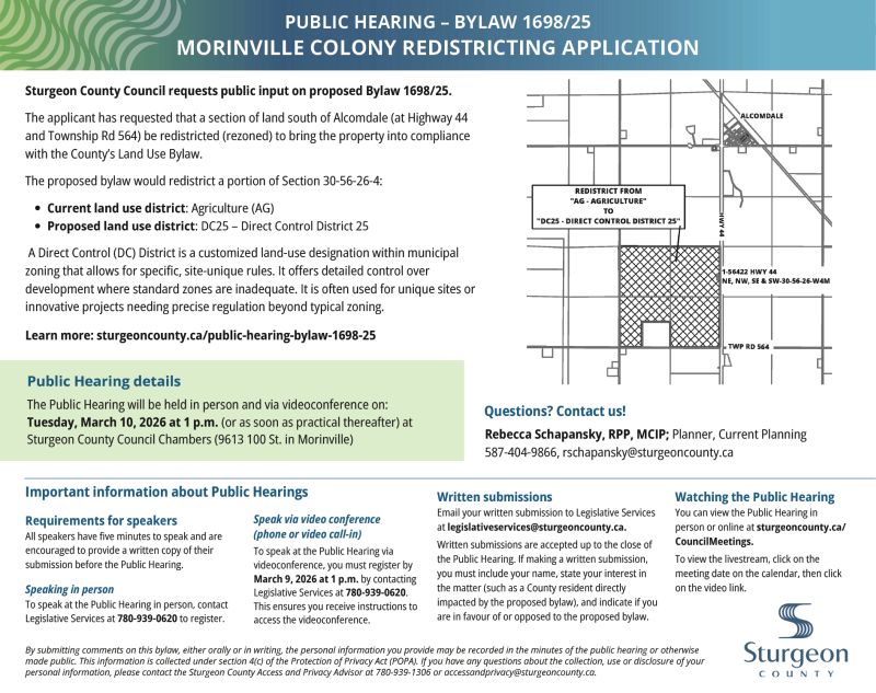 Public Notices Sturgeon County admin March 3, 2026 Post navigation Previous Sturgeon CountyNext Sturgeon County More Stories Public Notices Roseridge April 22, 2026 admin Public Notices Arbor Massage & Wellness April 22, 2026 admin Public Notices Sturgeon County April 22, 2026 admin