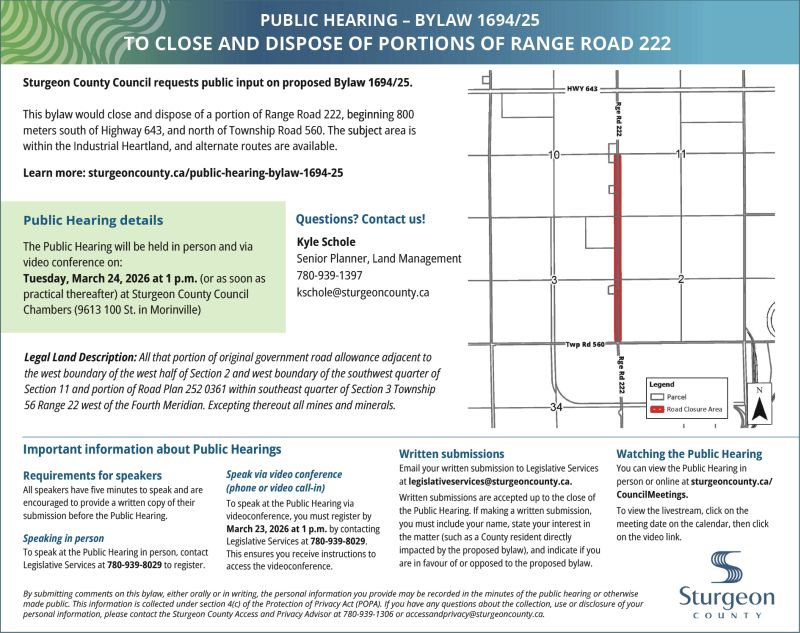 Public Notices Sturgeon County admin March 11, 2026 Post navigation Previous Gilchrist ConsultingNext Sturgeon County More Stories Public Notices Roseridge April 22, 2026 admin Public Notices Arbor Massage & Wellness April 22, 2026 admin Public Notices Sturgeon County April 22, 2026 admin